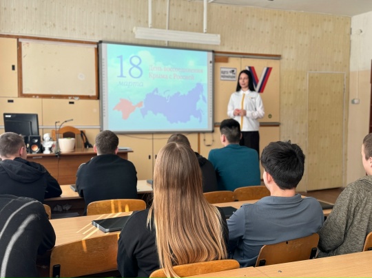 Для обучающихся группы №8 по профессии «Монтажник связи» был проведён урок учебной практики под названием «Крым — это Россия». В рамках занятия ребята познакомились с историей Крыма и выполнили практическое задание по созданию презентации «История Крыма». Это позволило им глубже понять значимость событий, связанных с воссоединением, и осознать роль Крыма в истории и современной жизни России.