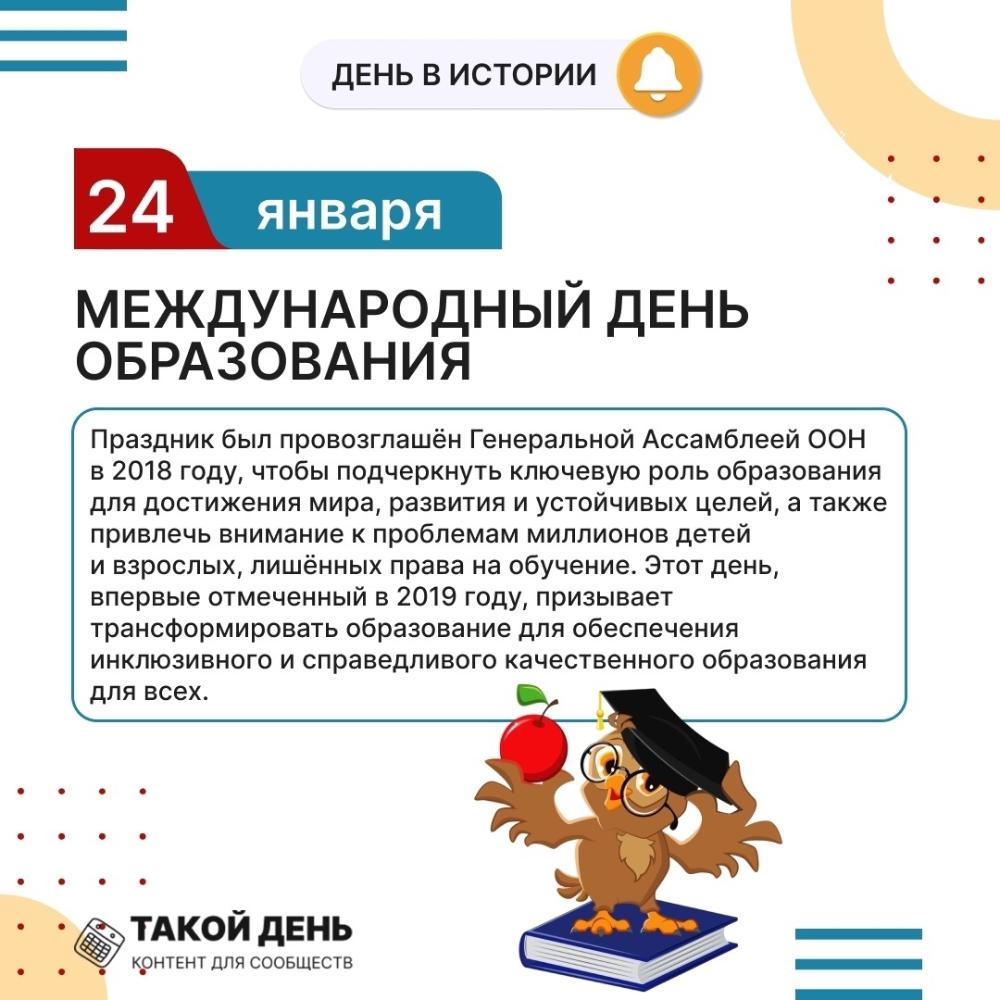 Международный день образования подчёркивает роль учителей, преподавателей и наставников, чей труд способствует формированию интеллектуального потенциала будущих поколений и повышению уровня грамотности и компетентности среди молодежи и взрослых. В этот день проводятся мероприятия, направленные на повышение осведомленности о важности инвестиций в образование, поддержку инновационных подходов к обучению и привлечение внимания к необходимости устранения неравенства в доступе к образованию.