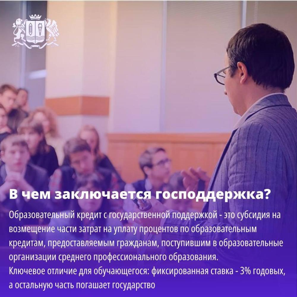 Образовательный кредит с господдержкой – это целевая помощь студентам, при котором для заемщика действует фиксированная ставка – 3% Это очень выгодно, поскольку сегодня процентная ставка на рынке кредитования варьируется от 17 до 28%, а образовательный кредит можно получить стабильно со ставкой 3%, при этом, оставшуюся часть % за обучающегося погашает государство. Кроме того, обркредит можно выплачивать в течение длительного времени – до 15 лет, что позволяет сделать ежемесячные платежи необременительными даже для молодых специалистов.